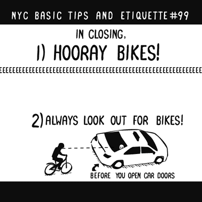 IN OTHER NEWS, NYC just added 6,000 share bikes! It's pretty big news, particularly if you're in one of the areas where the bikes are currently stationed. I decided to draw a few reminders for new bicyclists in NYC!